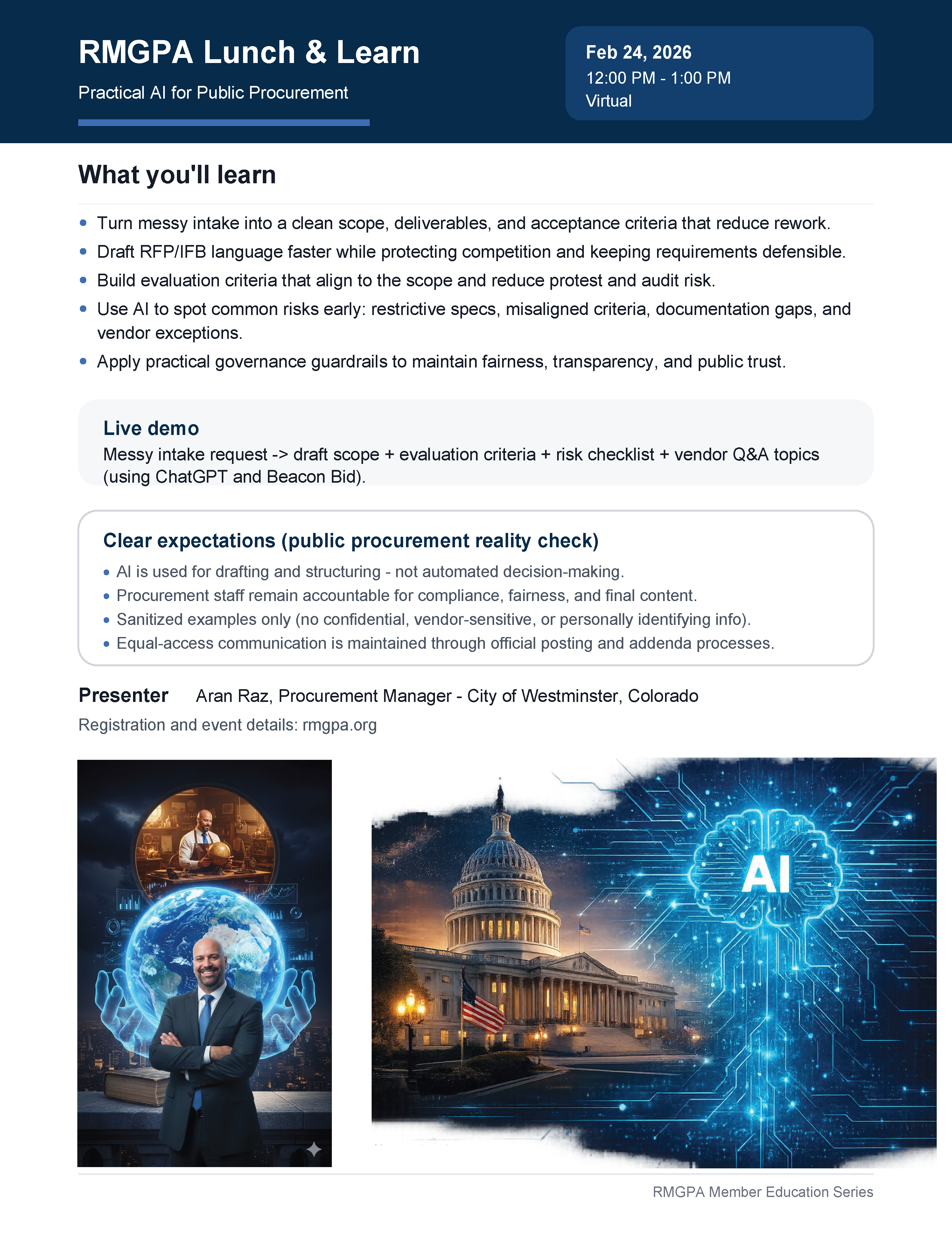 - Draft RFP/IFB language faster while protecting competition and keeping requirements defensible.